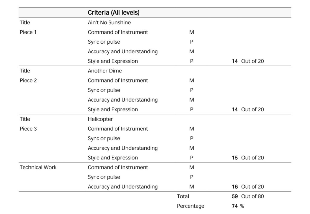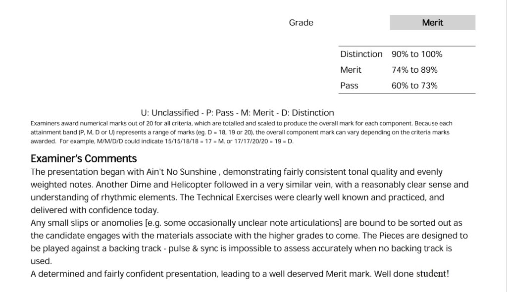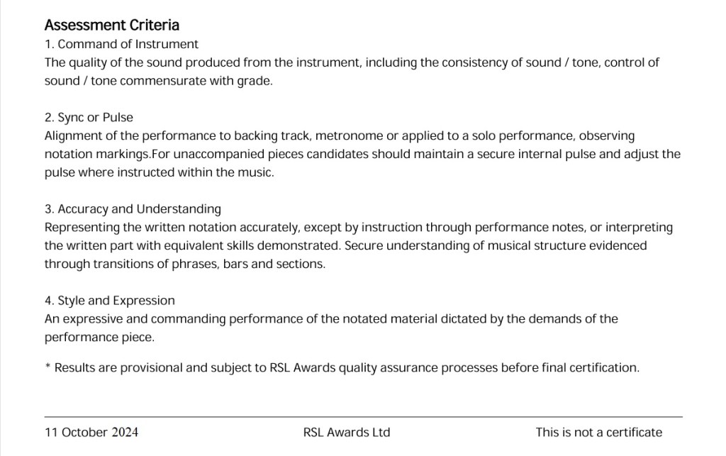Rockschool (RSL) Debut guitar exam – Video Graded Certificate Report